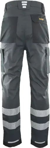 Premium παντελόνι εργασίας με ανακλαστικές ταινίες στο κάτω μέρος. Μοναδική ποιότητα υφάσματος με ενίσχυση 600D Oxford υφάσματος στις τσέπες και στο κάτω μέρος του παντελονιού που είναι περισσότερο εκτεθειμένα και επιρρεπή σε φθορές για έξτρα ανθεκτικότητα. Με φερμουάρ YKK. Εξαιρετική αντοχή και ελαστικότητα σε όλα τα σημεία του. Διαθέτει τσέπη για μέτρο, μεγάλες τσέπες μπροστά και πίσω, με ιδανική χωρητικότητα. Πλαϊνή τσέπη με Velcro. Δυνατότητα τοποθέτησης επιγονατίδων εσωτερικά του παντελονιού.